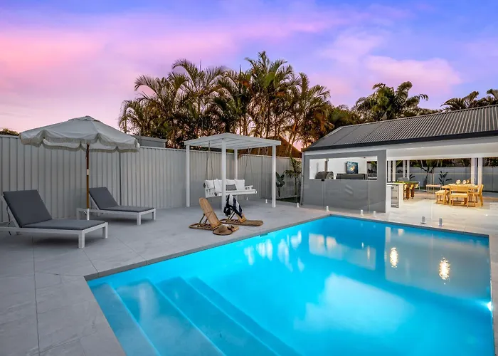 最近的机场是马卢奇郡, 昆士兰州机场,距离住所有20公里. 别墅设有露台.宾客便可享花园景色. Paradise Palms Mooloolaba - Beach House设有私人游泳池,使客人放松身心.